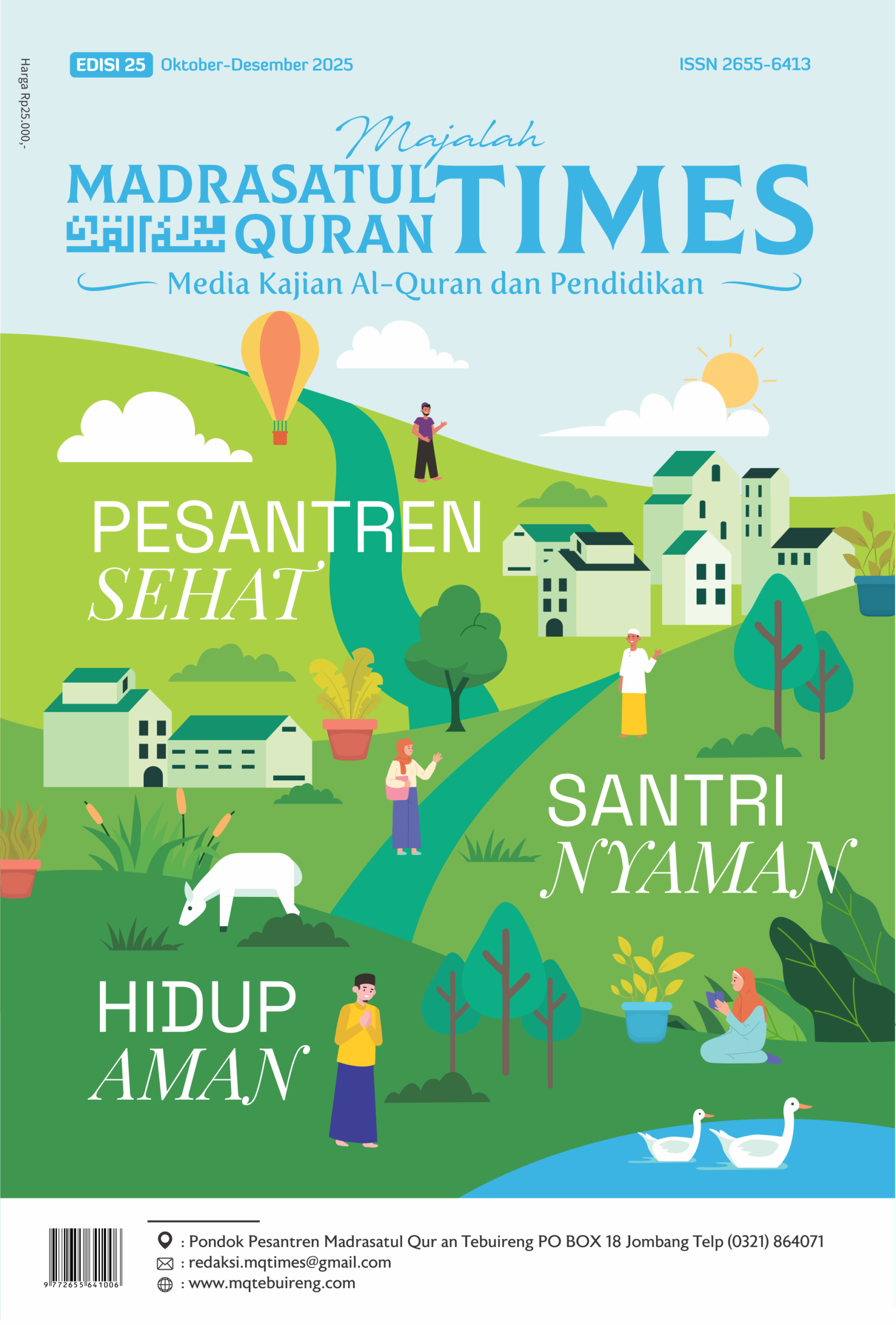Alhamdulillahi robbil ‘alamin, puji syukur kita panjatkan ke hadirat Allah SWT yang telah melimpahkan rahmat-Nya sehingga Majalah MQ Times kembali hadir dengan Edisi 25 bertema Pesantren Sehat, Santri Nyaman, Hidup Aman. Tema ini bukan sekadar slogan, melainkan panggilan tanggung jawab bagi setiap pengelola pesantren, kyai, santri, dan masyarakat muslim. Di era modern yang penuh tantangan seperti pandemi, polusi, dan ancaman digital, pesantren harus menjadi laboratorium hidup sehat berbasis Al-Qur an—tempat santri tak hanya hafal Al-Qur’an, tapi juga kuat jasmani, nyaman psikis, dan aman dari segala marabahaya.